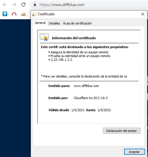Many thanks @leo we really appreciate your persistence on this! On each of those certificate dialog boxes, could you click on the ‘Detalles’ tabs, and scroll down through the list of fields and show us what the value of the “Thumbprint” field is? We just want to check that the correct servers are being contacted, and that there isn’t some sort of ISP transparent proxy in the way.